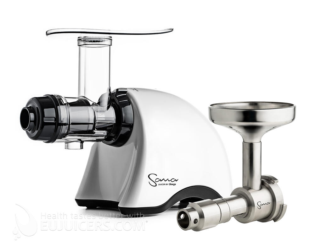O EUJ-707 não é apenas para fazer sumo; facilmente transforma nozes em manteiga, extrude massa fresca, moe café e especiarias, esmaga ervas e alho, faz comida para bebé, gelados e prepara leite de soja num ápice. Use o Sana 707 para fazer deliciosas bebidas saudáveis e lanches que todos vão adorar. Incluído com o EUJ-707 estão um filtro fino e um grosso para fazer sumo com diferentes tipos de produtos, um filtro homogeneizador para o processamento de alimento, um recipiente do sumo em vidro, um recipiente para polpa em aço inoxidável, um jogo de bocais para as massas e sorvetes, um empurrador de alimentos com um anel de silicone integrado e uma escova de limpeza.